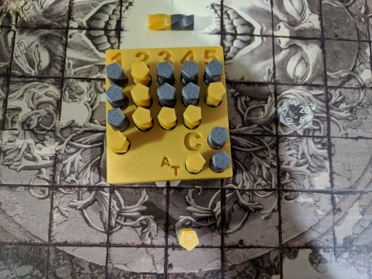 A simple, visual tool to know when you have used/available spell slots for your character. Primary color is the holder and half of the tokens. Accent color is on the other half of the tokens as well as the lettering (not shown in image).